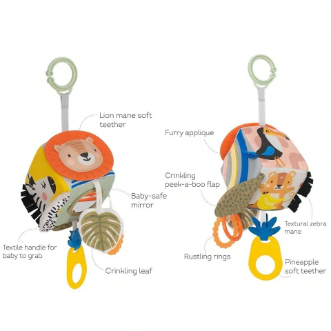 Este versátil juguete para bebé es perfecto para desarrollar la conciencia del bebé sobre sus sentidos. Diseñado para involucrar manos, oídos, ojos y bocas, este es un juguete multifuncional con mucho para explorar para los más pequeños. Seguro desde el nacimiento, las diferentes texturas y características significan que los pequeños nunca se aburrirán, y las adorables caras y características de los personajes, además de la inclusión de un espejo seguro para bebés, ayudarán al bebé a desarrollar su conciencia emocional y comprensión del mundo. Además, explorar las diferentes caras del cubo ayudará a desarrollar y refinar sus habilidades motoras mientras alcanzan, patean y agarran para interactuar con este juguete sensorial. El mordedor suave en forma de piña también es perfecto para aliviar las encías doloridas, algo muy necesario en los bebés de esta edad. Este es un gran regalo que puede crecer con la etapa de desarrollo de sus pequeños y que es perfecto para llevar de paseo y divertirse mientras viajan.