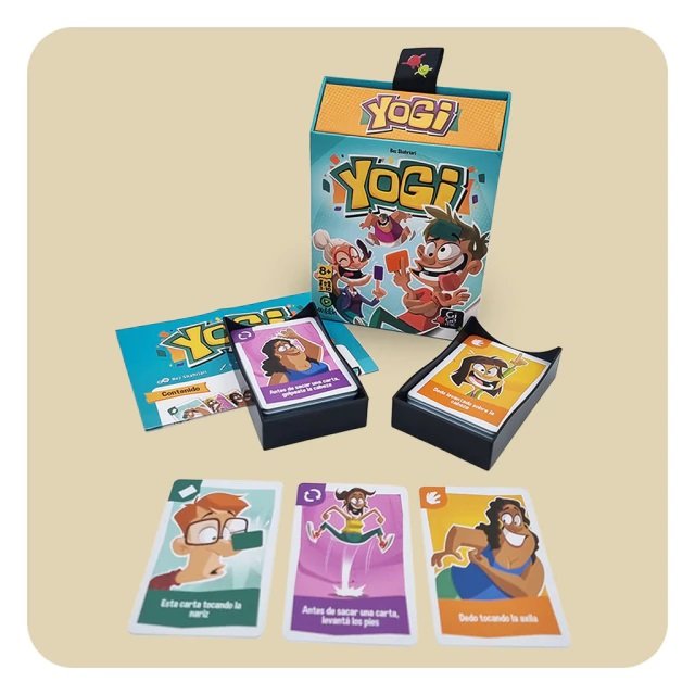 Yogi es un juego de mesa en el que tendrán que contornearse y torcerse para cumplir con las reglas. En tu turno, debés sacar una carta que te indica qué deberás hacer: ponerte la carta sobre la cabeza, tocarte la nariz con el dedo o simples instrucciones que parecen fáciles. Pero ojo, a medida que avanzan los turnos las instrucciones se van sumando y tendrás que seguir cumpliendo todo lo indicado desde el inicio. Un divertidísimo party game para jugar con amigos, familia e inclusive para romper el hielo que gente que recién conocés.   Autor: Behrooz Shahriari