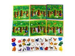 Una original lotería de reconocimiento y organización espacial que despierta en el niño la emoción de descubrir el personaje oculto. Observando atentamente podrá encontrar los animales que se esconden en su tablero de juego.