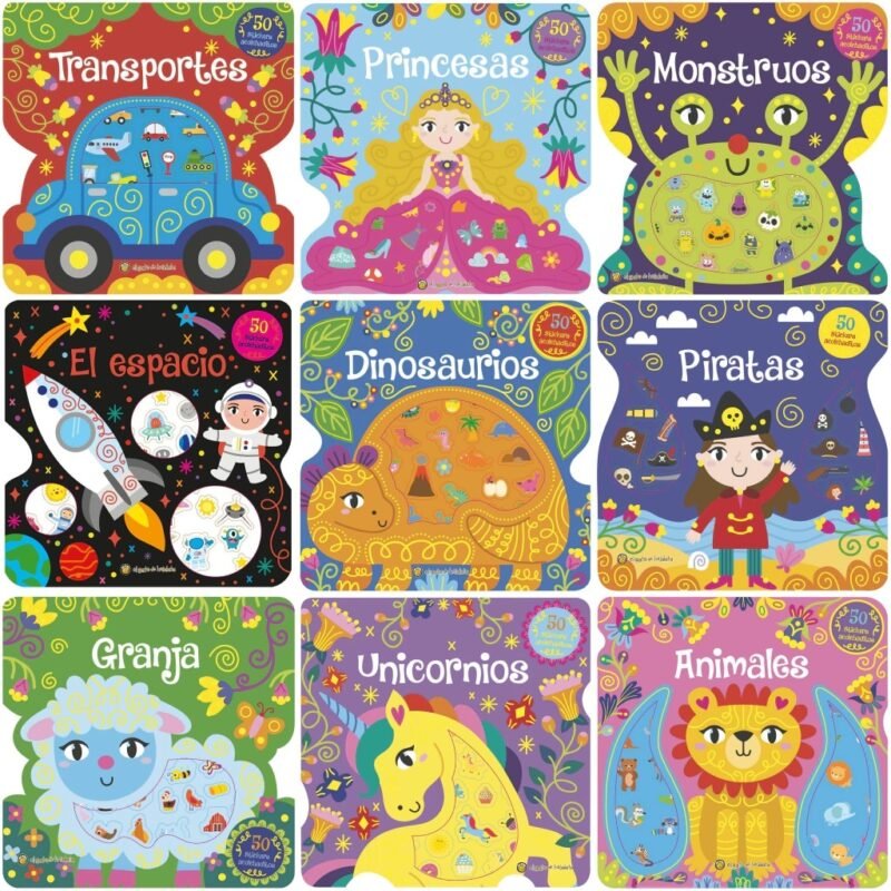 Una hermosa y completa colección de 10 libros de tapa blanda súper coloridas. Cada página ofrece actividades emocionantes y muchos stickers acolchados que los niños pueden ver y sentir. Esta colección brinda diversión táctil en cada momento. Ideal para llevar a cualquier parte, ¡es una aventura interactiva que los niños adorarán!