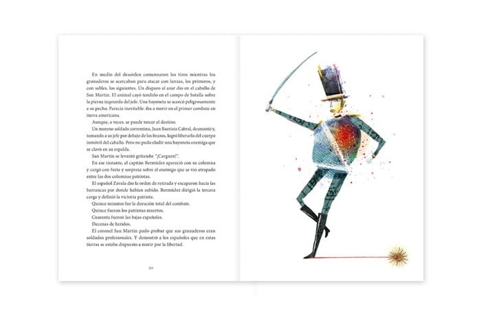 Sus primeras batallas en África, cuando tenía tan solo 13 años, el célebre cruce de los Andes, y también los aspectos más íntimos relacionados a su familia y a sus amistades. Las palabras de Daniel Balmaceda y las bellísimas ilustraciones de Pablo Bernasconi dan vida a esta entretenida biografía de José de San Martín.