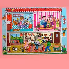 En esta casa todos sus integrantes se divierten ¡Armalo y descubrí lo que pasa en cada ambiente! Una vez que lo termines dalo vuelta y ponele color
